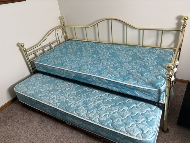 Daybed with trundle. 2 mattresses included as well as comforter, 2 shams and a sheet set