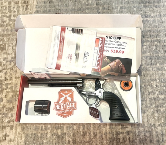 Brand new never fired. Heritage .22 revolver with .22LR and .22WRF cylinder. Asking $180 or open to trade/cash.