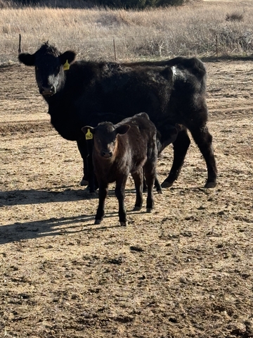 20-30 Angus heifer pairs for sale. Calves are tagged to match, bull calves are banded, and first round of respiratory and black leg shots have been given. Heifers will weigh 1150, calves are 30-45 days old.