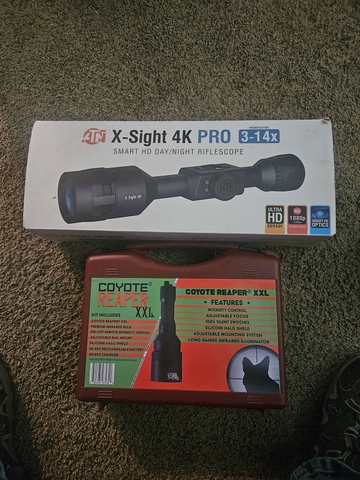 I have a atn 3x14 night vision scope with charger and a ir light all works good just up graded to a thermal u can text me at 785 534 7103 or best offer