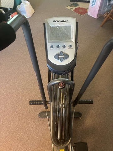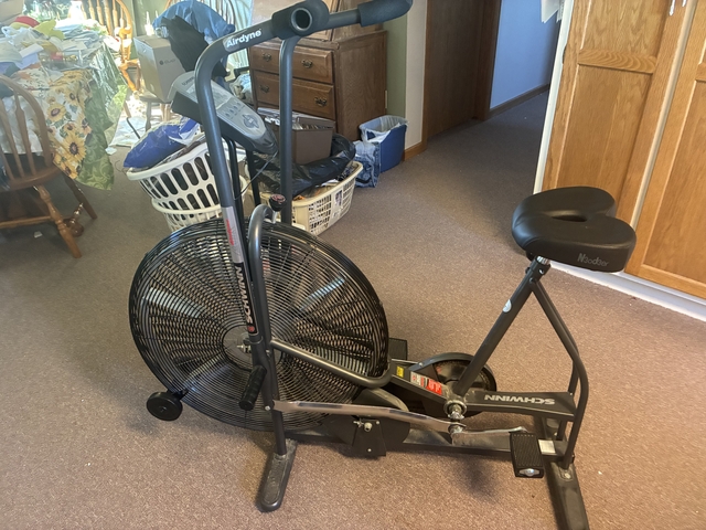 For Sale: Schwinn Airdyne exercise bike that's in mint condition. Comes with 2 different size seats. 2 modes of exercise for arms & legs. Always been shedded inside our house. Battery operated monitor included. $250.00 obo.
