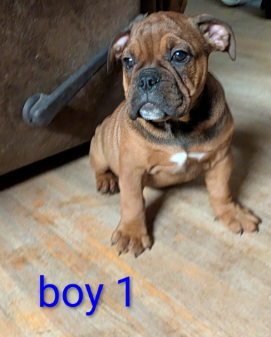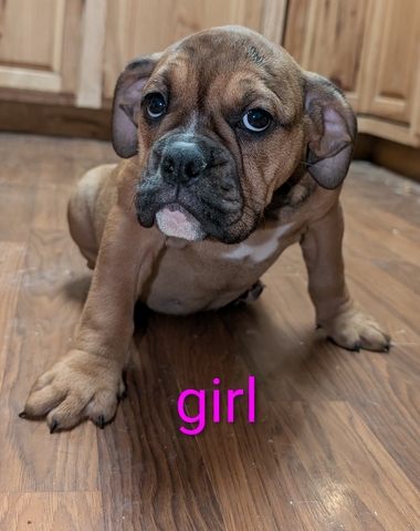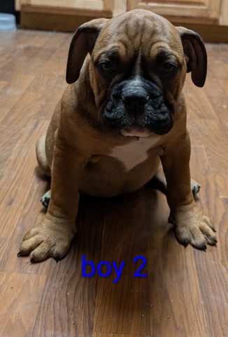 The pups were born on 12-8 and they have been vet checked and have been health cleare. They have had their first round of shots and dewormed. Both parents are full blooded bulldogs. I do not have moms papers but I have her akc number. So unfortunately the pups can't be registered. I have three boys and one girl. I do have body pictures of all the pups but I can only upload 6 pictures. Mom is the white faced bulldog and dad is the black one