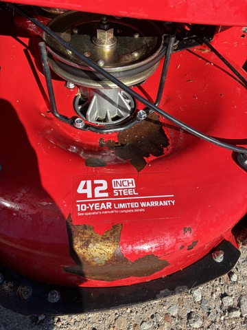 42" deck, new spindles, pulleys, belt and blades. Hydrostatic transmission. Starts and runs great. 180 hours on hour meter.