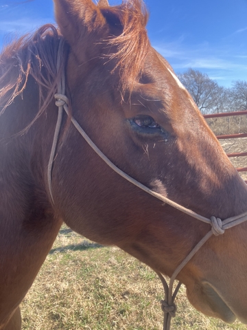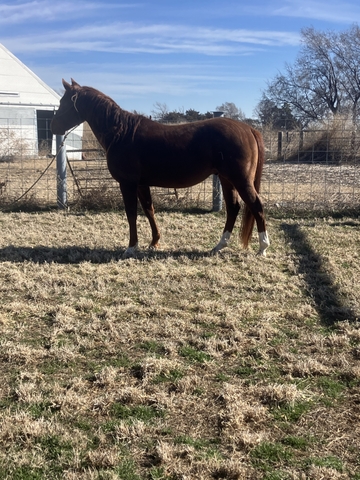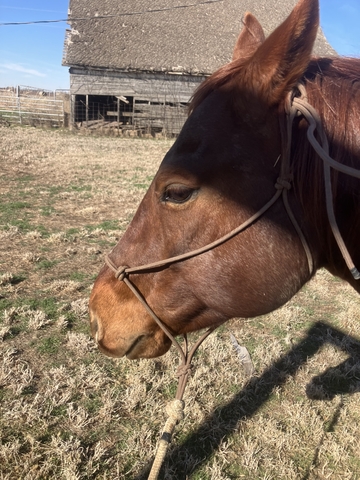 Coming 8 son of Third Cutting out of a Smart Mate daughter. I have owned him for several years. He's an easy keeper and calm as the day is long. He only has the use of one eye (pictured) I got him that way and he has never acted like it bothers him. Not selling as broke to ride. Have just been using him to pasture breed for the last couple of years. He will make someone a good ranch stud. He is AQHA papered. Call 620-770-three three 0 5 with questions.