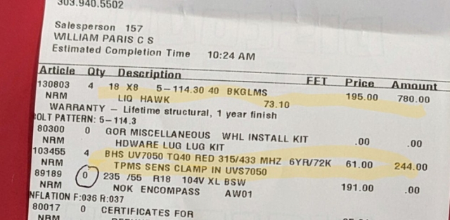The wheels retail new at $190/each, and the TPMS are $60.