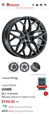 Liquid Hawk Metal wheels: The four wheels are 18x8 with the 5x114.3 bolt pattern.