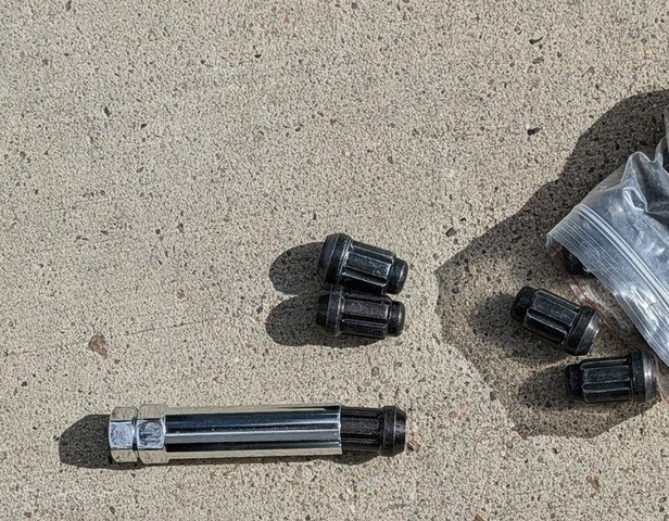 Included are the custom lug nuts and a spline tool to remove them.