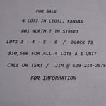 9 vacant lots for sale. Located at 8th & Elm St., Block 36 in city of Bunker Hill, KS. Utilities: Water-Sewer-Electric-Gas available on site. Minutes from I-70 & Wilson Lake. Selling all lots together.