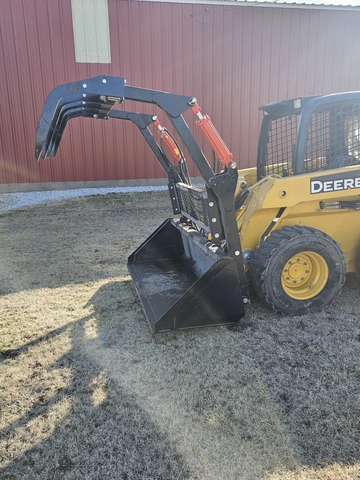For sale: 7' Industrias America BG grapple bucket. New condition. Universal skid steer mount. Replaceable grapple teeth.