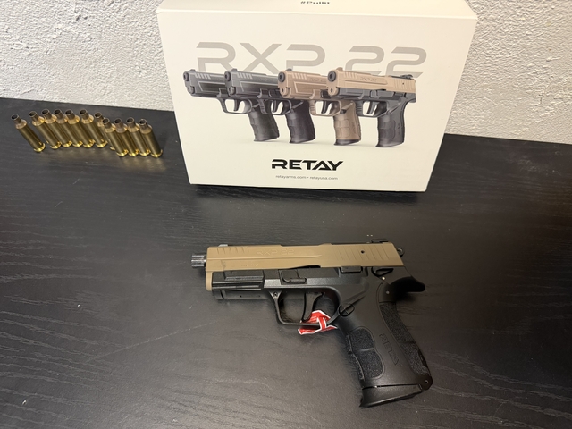 Retay USA RXP 22 LR 13+1 4" Threaded Barrel, Flat Dark Earth Cerakote Optic Ready/Serrated Slide, Black Cerakote Polymer Frame w/Accessory Rail