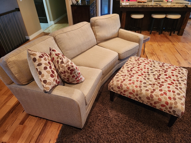 Ottoman with 2 Matching Down Stuffed Pillows