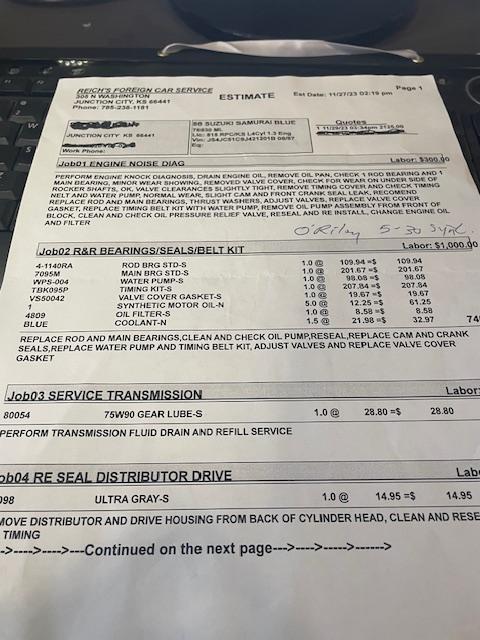 1988 Samurai 78,661 miles Factory AC need service), 5 speed. Two tops almost new. Extensive Engine Maintenance ( Invoice in Pictures). Equipment to be towed included. New starter also included, did not need replaced at the time bought. Not been off roaded. No Modifications. Adult driven.