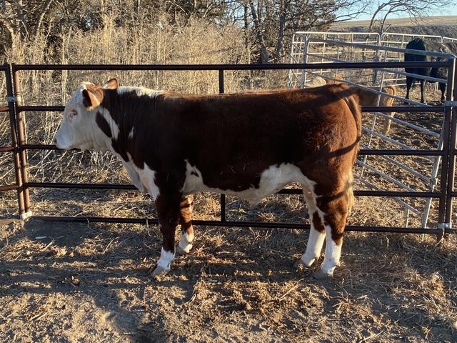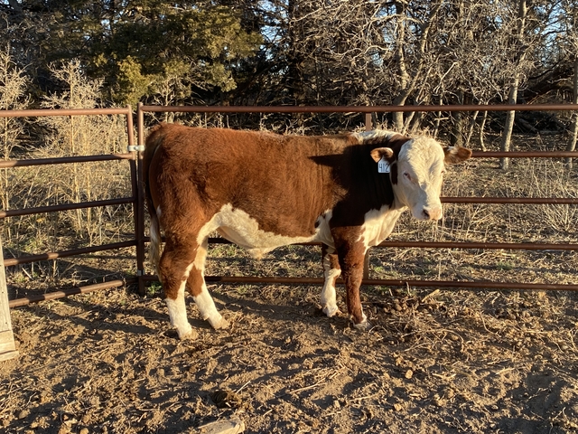Polled Hereford Bull is 13 months old, very good disposition, low birth weight, will work on heifers