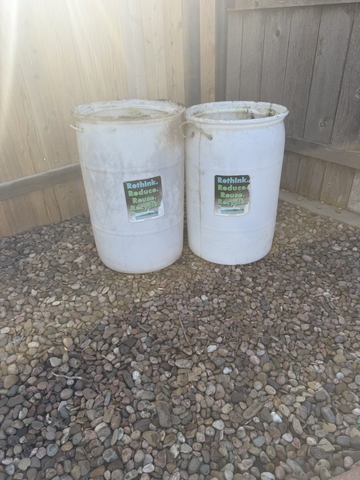 (1) 30 gallon plastic barrel. Top out & rope handles