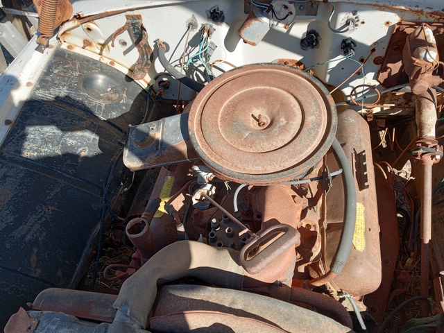 Parts or a decent candidate to restore. 2 WD, 4 speed manual transmission, V8 engine (345?) does not run. Has been sitting for many years. Very little rust however passenger side fender probably needs replaced, hood is beat up and drivers aide rear panel is rolled in by wheel but will probably straighten out ok. Have original owners manual with the build sheet! Comes with a bill of sale.