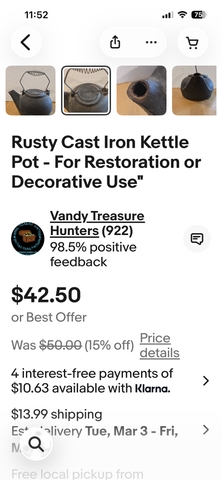I have a rusty cast-iron kettle pot used for steamers in old stoves. Asking $50