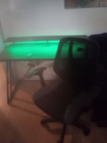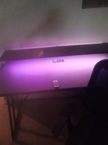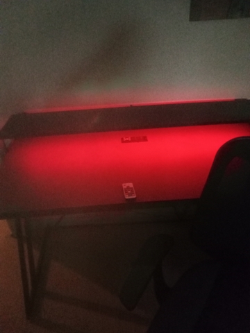 Desk lights up changes colors with remote, gamer would really like it.