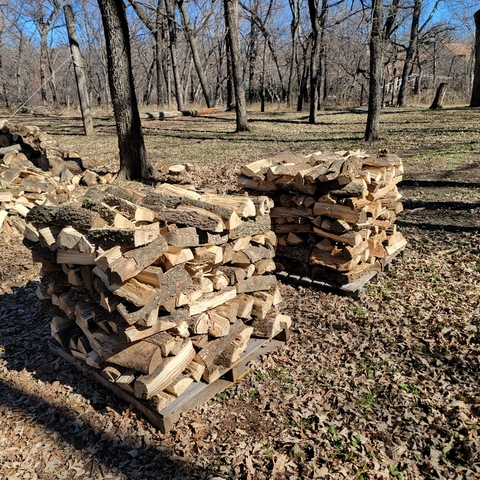 I have 6 pallets of split hackberry ready for the fireplace. It is split and on pallets ready to go.