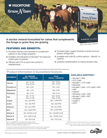 A stocker mineral formulated for calves that complements forage or grass they are grazing.