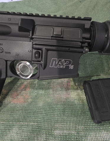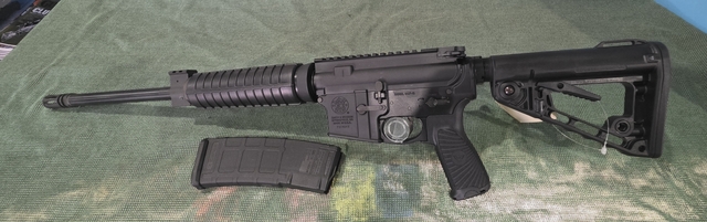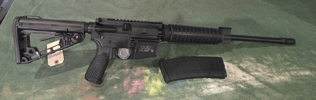 Lightly used S&W, M&P-15 Sport II rifle. 5.56, 16", factory hand guard, New Wilson Combat grip and 6-position stock, and 1 MagPul 30rd Magazine.