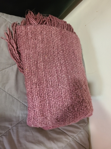 A throw with frizzy ends asking 5.00 dollars for it it folds out to four by four feet first come first buy I live in Hays Kansas text me at 7852599485
