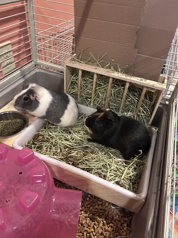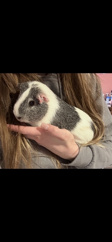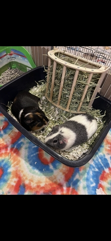 Two male Guinea pigs about 2.5/3 years old. One black, white and brown. The other is a grey and white. Can come with cage and supplies.