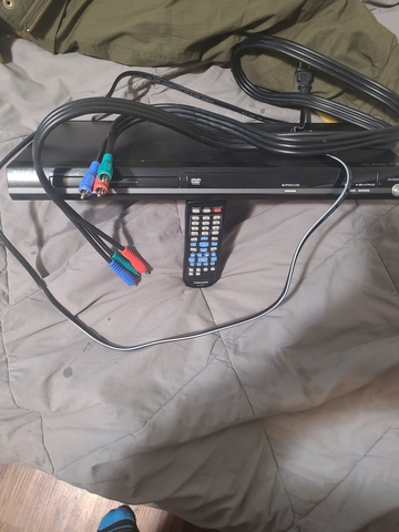 A DVD player and remote it all works well heavy duty cords to it also it's nice .
