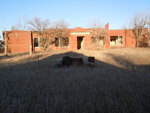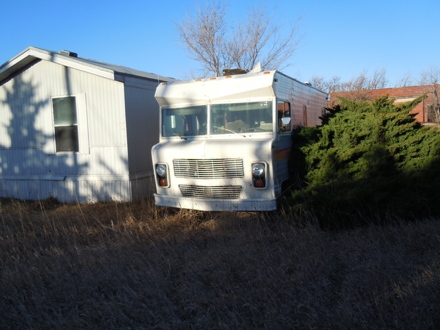 The old Arnold school house. This includes one and one half city blocks in the unincorporated town of Arnold KS. (NW Ness Co.) Includes the land, school building, two oilfield dog houses, a few farm machinery pieces, a mobile home, a Dodge motor home with a 440 engine and a generator. (I'd sell the motor home separately if anyone is interested although it's in poor condition). Many mature white pine and cedar trees along s and e property lines. Property has two water meters for Arnold city water. Also has the reconditioned original water well for the school. Tested good drinkable water. The original large school septic system, which the mobile home is hooked up to. Many uses for this property, oilfield yard, farm equipment yard, or tear it down and sell the bricks. Currently fenced with metal gates to run cattle. It's right beside highway K4, which would be beneficial for any business type venture. Quitclaim deed. $16,900. Contact me here or at: six207925four98. Keep trying, I'm sometimes hard to get and it's a no text phone.