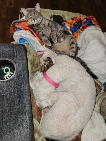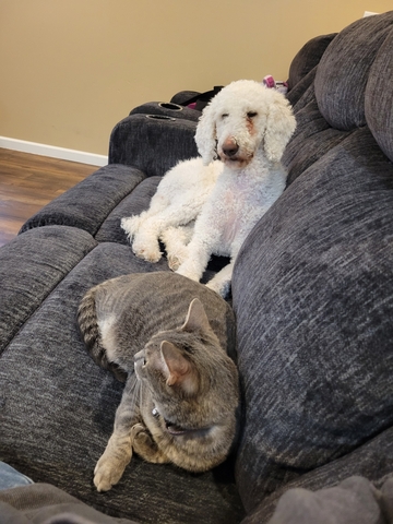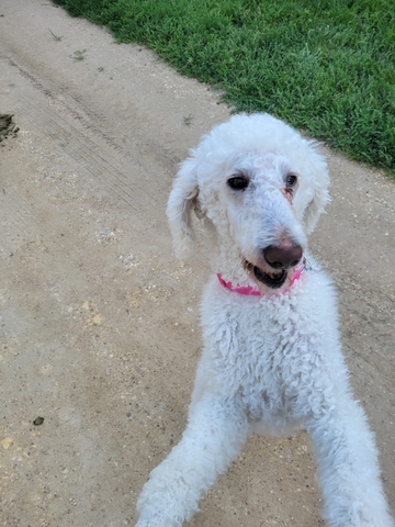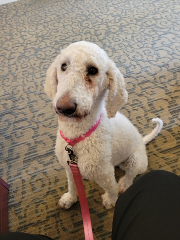 5 year old female. Very loving. Excellent emotional support. She gets along with cats and tolerates other dogs but doesn't usually want to interact with them. Shes great with kids. Once she bonds with you she does not like to be away from you. Shes very much a people lover.