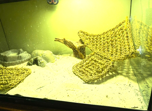 Comes with lizard, 40 gal aquarium, several hammocks, water bowl, hiding rock, heat lamp, and any food/supplement he currently has.