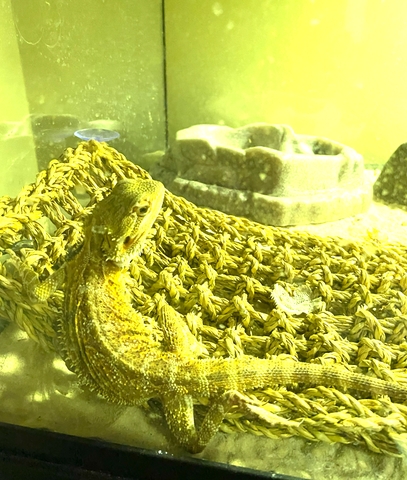 Red bearded dragon purchased from Petsense this summer. Son quickly realized he was not interested in handling animal, so it is not familiar with human touch. He is still fairly small so will be able to be tamed.
