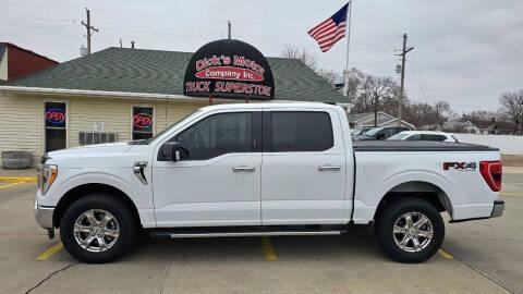 2021 FORD F-150 CREW XLT FX4 OFF-ROAD PKG 4WD 5.0L V8 -PWR HEATED CLOTH- NAVIGATION- DUAL CLIMATE- PREMIUM STEREO- SYNC- SIRIUS RADIO- BACKUP CAMERA- 360 DEGREE VISION- PARKING AID- DRIVER SAFETY PKG- BLUETOOTH- REMOTE START- LOCKING/LIMITED SLIP DIFF- SKID PLATES- FOG LIGHTS- TAILGATE STEP- RUNNING BOARDS- PWR SLIDE REAR WINDOW- SPRAY ON BEDLINER- HARD ROLLING BED COVER- SWING OUT TOOL BOXES- PWR HEATED MIRRORS W/ LED SPOTLIGHTS-TRAILER BRAKE CONTROL- ALLOY WHEELS- TOW PKG! STOP BY, OR CALL 308-384-2554 ASK FOR DAN! SALE PRICE $34,899 76K MILES! Visit dicksmotorcompany.com