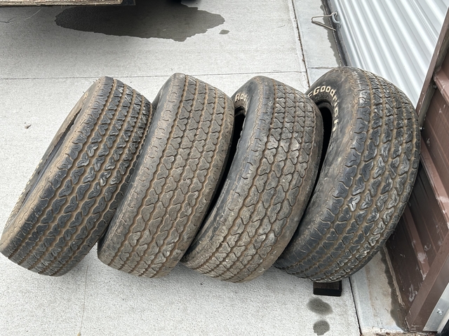 These are 4 older tires that had been on a car we are restoring. They probably would be good for use as trailer tires. 20 dollars for all of them.