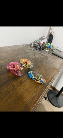 These skulls I done must are gone deer all little skulls are gone just few cow skulls I have left tail feathers I done have some left duck and geese and pheasant they make great wall hanger for a man cave or all around the house all skulls are spray painted dipped so there will never be another like it got skulls bring them by pick out colors message for price if you want anything or would like fanned out tail feather