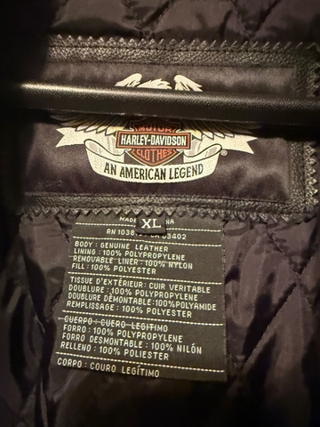 For sale Mens Genuine Harley Davidson Leather Jacket. Like new condition. Size XL. Has removeable liner, zipper vents. Comes from non smoking home. No marks or stains on the jacket.