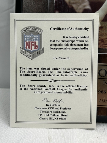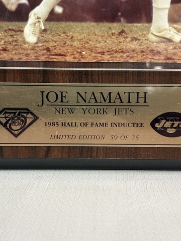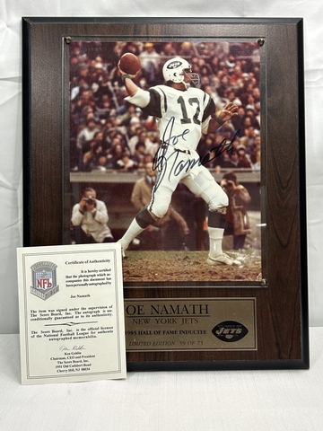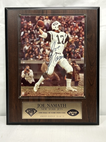 Joe Namath autographed plaque.