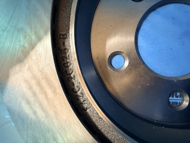 SN95 Cobra front brake rotors. We did a SVE Cobra conversion on my son's 02 New Edge. These are the rotors that came with the kit. We opted for matching drilled and slotted rotors for the front and rear and never installed these. Part No. F4ZC-2C026-B