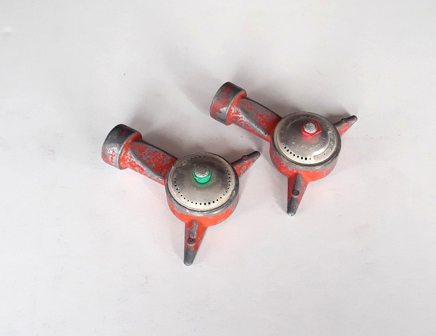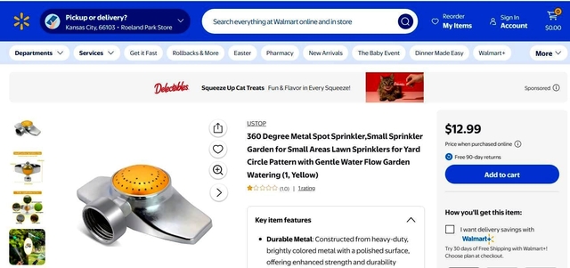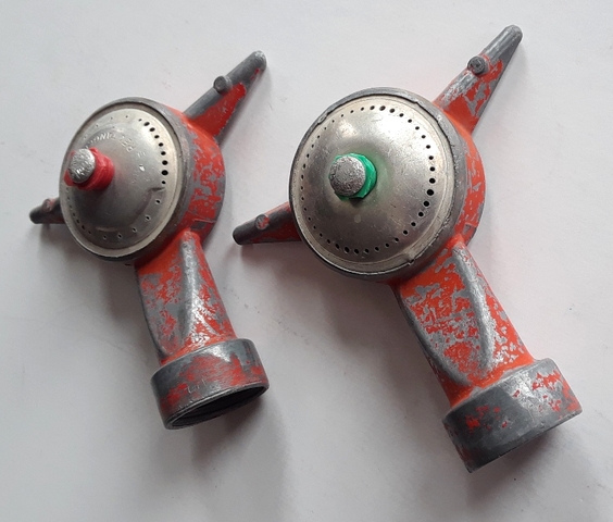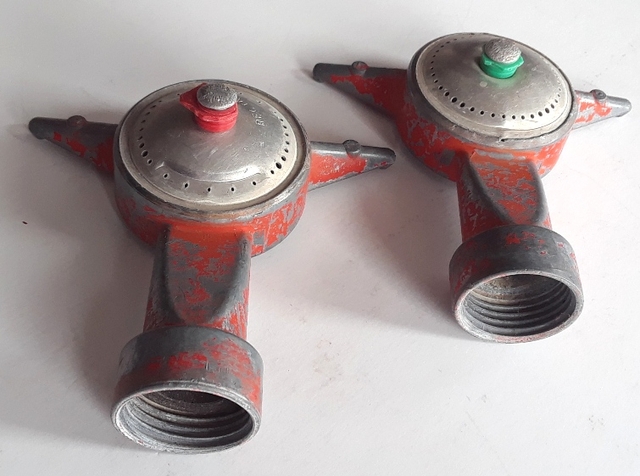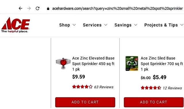 2 - Sprinklers - $5.00 Selling TWO metal spot sprinklers for watering lawn or flowers. Measurements: 4” x4” No moving parts so they work good. New sprinklers similar to these sell for $6.00 to $12.00 each at Ace Hardware or Walmart. Buy these TWO for only $5.00.