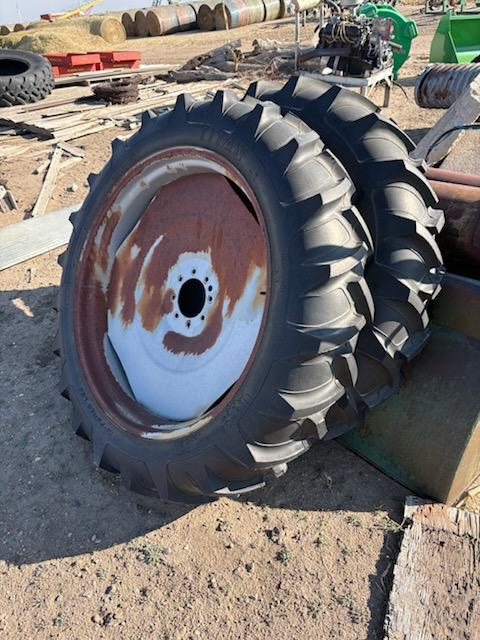 Two 11.2 X 38 on Reinke rims. In good condition, no weather checking
