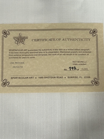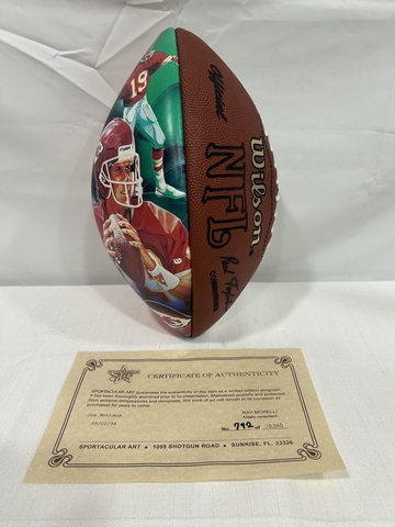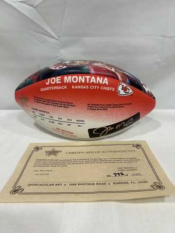 This item is a limited edition "Sportacular Art" serigraph Wilson NFL football featuring Joe Montana of the Kansas City Chiefs. Comes with original wilson box.