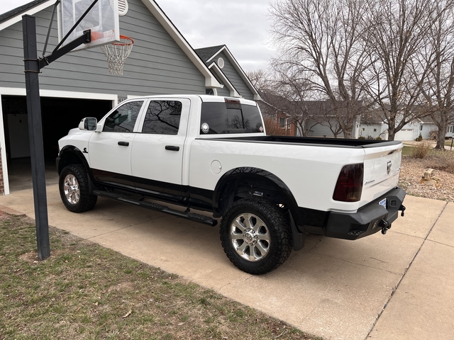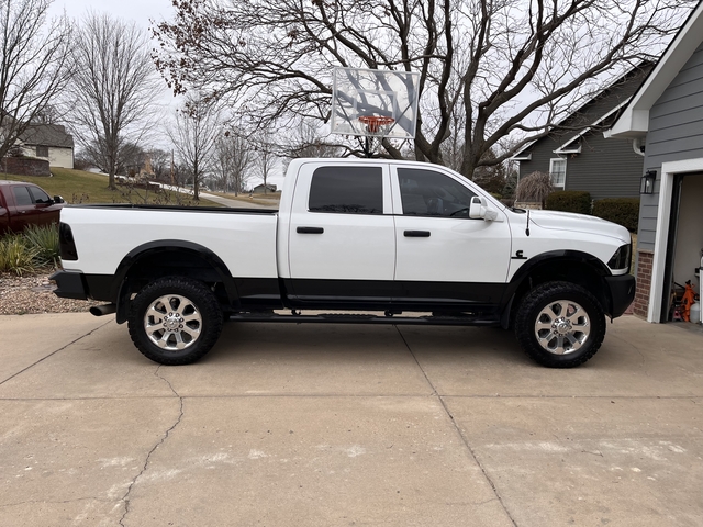 3 in lift, 4wd, 6.7 cummins, no DEF needed, tuned with race me tuner. CAI, 119500 miles. 3.42 axle, 68RFE 6-speed transmission, sunroof, new fog lights last yr. front/rear bumper and grille done with black bedliner. black hood decal, spray in bedliner. B&W under bed receiver for gooseneck, new 20 in LED light bar, new drag link\tie rod bar\track bar. BD power steering box stabilizer, dual steering stabilizer installed as well.new leather interior is 2 yrs old. 35x12.5R20 rough country MT tires with 3500 miles on them. front alignment a yr ago. brake fluid flush\new front brake pads april 2025. transmission fluid and fuel filters replaced at 109000 miles. valve lash adjusted\CCV filter done june 2025. power steering fluid changed may 2025.coolant replaced spring 2025wheel bearings and axle seals all replaced within last yr. new rear shocks @115000. Rear air spring kit with onboard compressor installed last spring. paint has some rock chips-it is 12 yrs old but overall is in very good shape. Bora 2 in spacers on 20 inch chrome stock rims. remote start, heat and air work good, heated front seats. have both key fobs.