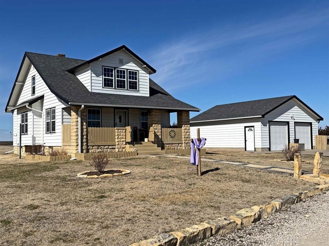 Two-story farmhouse situated on 2 peaceful acres, offering space, functionality, and country living at its best. This 4-bedroom, 2-bath home provides plenty of room for family or guests while maintaining the character of a classic farmhouse. Enjoy a beautiful view of Victoria right from the covered front porch, making it the perfect place to relax and take in the scenery. The property features multiple outbuildings, including a 30×40 shop ideal for equipment, hobbies, or storage, as well as a 12×22 finished shop with electricity, heat, and air, perfect for a workspace or year-round projects. A 2-car detached garage located next to the home provides convenient parking and additional storage. Experience the privacy and open space of rural living while still being within a convenient distance of town. Call A.J. Preisner with Platinum Group at 785-259-5242 to schedule your private showing today