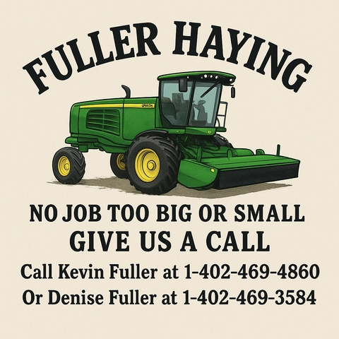 Looking for more acres for 2026 and beyond. Competitive rates. We run a newer johndeere w235r johndeere swather with double crimp head. Also run 5x6 round balers two of them and there 560m John Deere I include the raking in with baling and we run a rhino 16 wheel hay rake