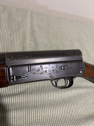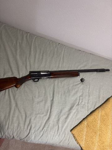 Browning A-5 in great condition for its age. Looks like it was manufactured in 1951. Is a 12 gauge with no rust. Has a compensator on the end of the barrel with a screw on full choke and a spreader choke pictured. All the number are matching on this shotgun. Has a few scuffs on the butt stock but just from normal use.