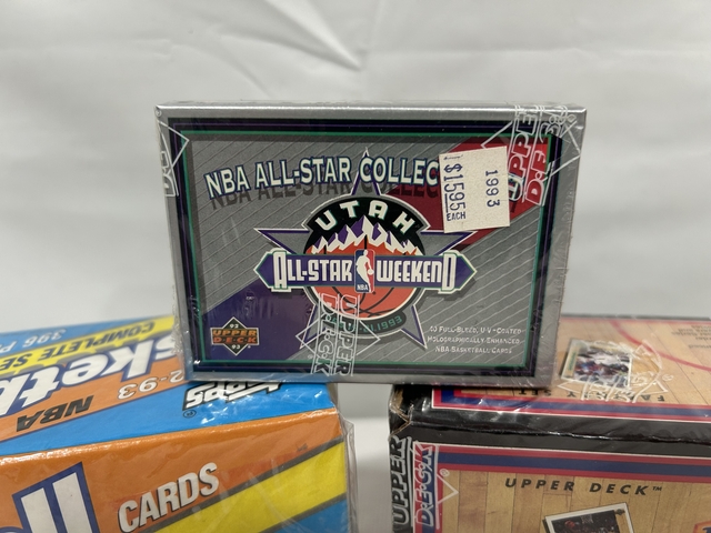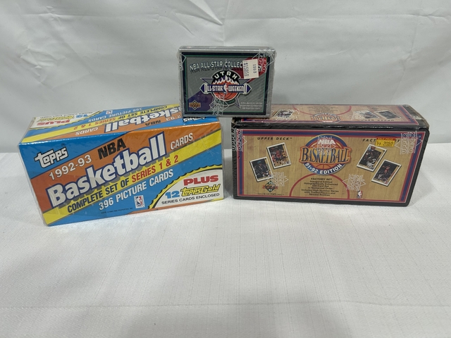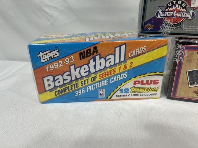 Individually priced boxes of factory sealed complete sets of Basketball cards.