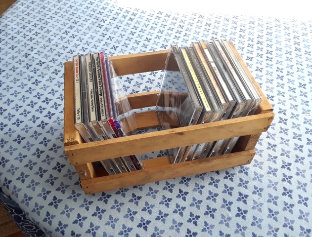 Wood CD or DVD Storage Crate - $10.00 – Selling a used wood storage box that works great to old music compact discs or video DVD discs. Measurement: 10” long x 6” wide x 5 ¼” tall. Similar small wood storage crates sell new for $20.00 to $30.00 (images #5 & #6)
