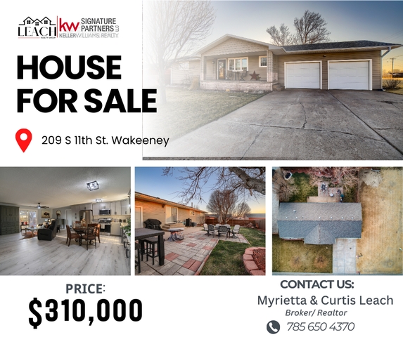 MOVE IN READY IN WAKEENEY, KANSAS. Walk in and feel the difference the moment you step inside. This home has been thoughtfully opened up on the main level, creating a bright, welcoming layout that flows into a brand new kitchen featuring quartz countertops, soft close cabinetry, and updated appliances that complement the space beautifully. You will love the fresh feel throughout with all new flooring, updated electrical, and modern lighting. Downstairs, the finished basement adds valuable extra living space and includes a fourth non conforming bedroom, perfect for guests, a home office, or hobby room. Updated windows bring in great natural light while helping with energy efficiency, and the average utilities are approximately $187 per month. Bonus features include a whole house fan, underground sprinklers in the front yard, and a backyard built for relaxing with a privacy fence and patio that is perfect for enjoying those Kansas sunsets. With a large lot and updates already done, this is a home you can move right into and enjoy from day one. Call Keller Williams Realty at 785.650.4370 to schedule your private showing.