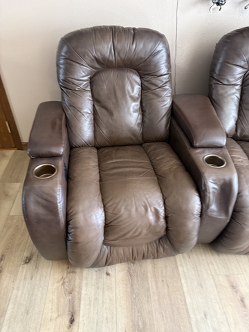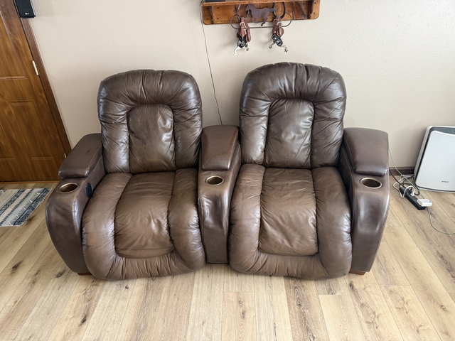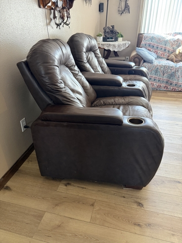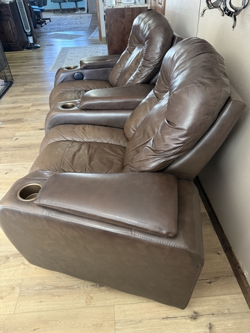 3, Theater Seats, Power Recliners with Sliding Armrests, Cup Holders & High Backs.