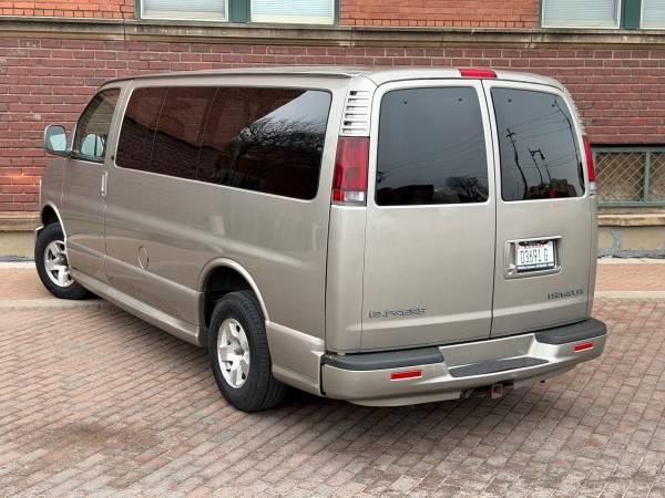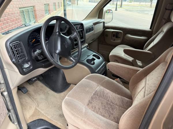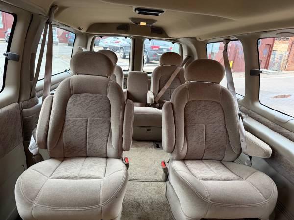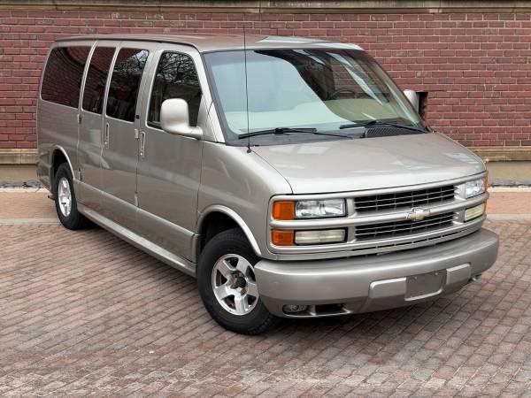 For sale is a 2001 Chevrolet Express G1500 LT 3dr 7 Passenger Van. This is a clean title 1 OWNER vehicle with 161k miles. This Van is in excellent condition inside and out and runs and drives perfectly. There are not many left in this condition! Check out the amazing cloth interior. I love the comfort and designs of this era! New vehicles just do not have soft seats and ride anymore. This van was bought new locally here in Wichita KS and spent its whole life here and has exceptional care and service. Be sure to check out the Carfax in the picture gallery on our website. It has lots of cool options like factory VHS rear entertainment! Go retro and dust off those old VHS tapes if you still have any. LOL. I have a bunch and will leave one in the van for demonstration. It also has factory alloy wheels, towing package, rear heat and ac, middle row captain chairs, cruise control, power windows, power mirrors, and a host of other great standard and optional features. This full-size van is powered by a 5.7-liter V-8 engine putting out 255hp/330lb-ft driving the rear wheels via a 4-speed automatic transmission. Stop by and check out this amazing van for yourself. Thanks for looking! VIN# 1GNFG65R011184374