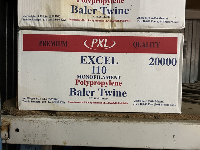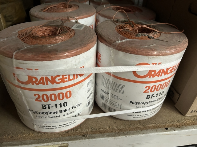 We have 5 Boxes of blue and white 110# twine, and 4 Bundles of orange 110# twine at a specail price. These are 2 balls (20,000 feet total) in each bundle/box. Regular price is $37.91, we are selling for $25 each. Beloit location Only. Stock #RB110.